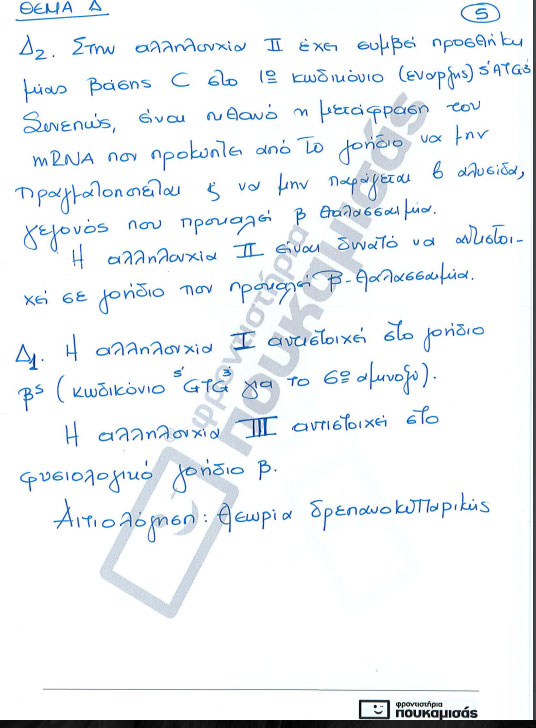 Βιολογία Προσανατολισμού οι προτεινόμενες Απαντήσεις από τα φροντιστήρια Πουκαμισάς