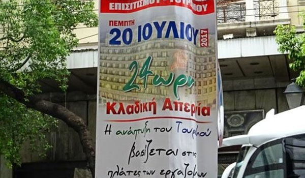 Πανελλαδική 24ωρη απεργία στον κλάδο του τουρισμού