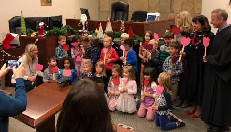 Στην αίθουσα εμφανίστηκε ο 5χρονος Μάικλ για να παραστεί στην ακροαματική διαδικασία που αφορούσε την υιοθεσία του από τους ανάδοχους γονείς του και μαζί του ήταν για συμπαράσταση όλη η τάξη του νηπιαγωγείου του!