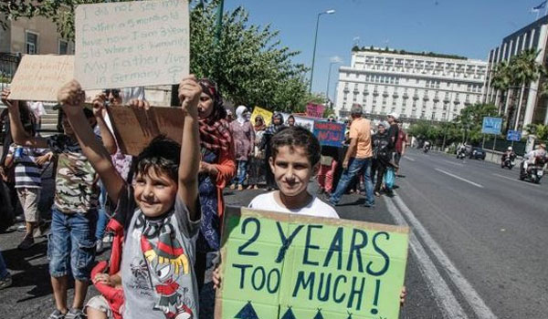 Γυναίκες, άνδρες, παιδιά από τη Συρία, πραγματοποίησαν πορεία με συνθήματα και πανό στα γερμανικά, τα αγγλικά και τα ελληνικά, από το Σύνταγμα ως τη Γερμανική Πρεσβεία, με ενδιάμεση στάση τα γραφεία της Ευρωπαϊκής Επιτροπής, διαμαρτυρόμενοι για τον περιορισμό στις οικογενειακές επανενώσεις προς τη Γερμανία.