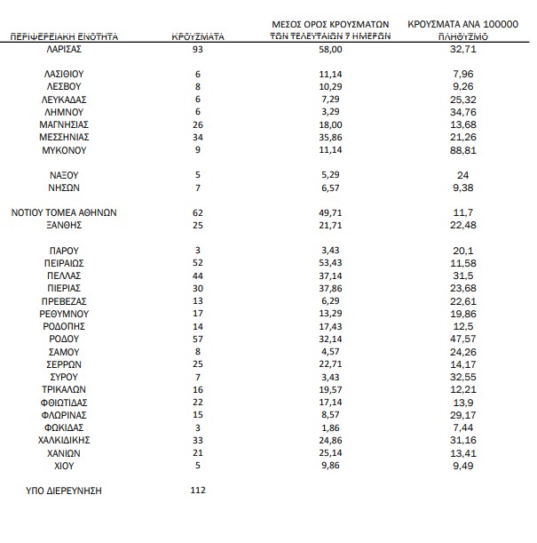 Τέλος, 112 κρούσματα βρίσκονται υπό διερεύνηση.