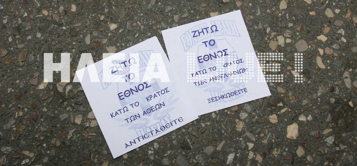 Τα φέιγ βολάν που φέρουν τα “σφραγίδα” της Εθνικής Δράσης Ηλείας, έσπευσαν αρκετοί να πιάσουν για να δουν τι γράφουν, ενώ η Ομάδα Συλλήψεων της Υποδιεύθυνσης Ασφάλειας Πύργου, έσπευσε να αναζητήσει τους δράστες αυτής της πράξης.