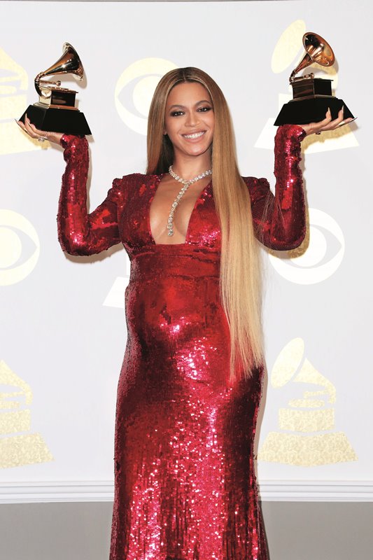 Παρόλο που η 35άχρονη Beyonce δεν κέρδισε τα περισσότερα βραβεία στη τελετή, απέσπασε αναμφίβολα τα περισσότερα φωτογραφικά φλας με την εμφάνισή της. Η Beyonce που πραγματοποίησε την πρώτη της εμφάνιση μετά την ανακοίνωση της διπλής της εγκυμοσύνης, επέλεξε να συνδυάσει την κόκκινη Peter Dundas δημιουργία της με sleek μαλλιά και ένα bronze μακιγιάζ. Το smokyβλέμμα της κινήθηκε σε καφέ και χρυσούς τόνους, ενώ τα χείλη της «έντυσε» σε απλή nude ματ απόχρωση.