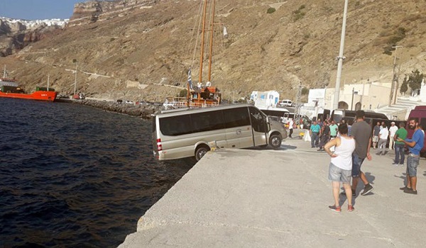 Σαντορίνη: Mini bus βρέθηκε να αιωρείται στο λιμάνι