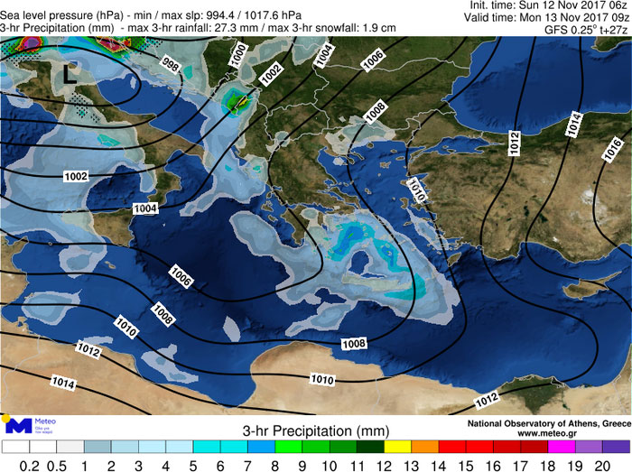 Καιρός: νεφώσεις με βροχές και σποραδικές καταιγίδες κυρίως στα νότια, οπού πιθανόν το πρωί θα είναι τοπικά ισχυρές στο νότιο Ιόνιο και την Πελοπόννησο (κυρίως στα νότια τμήματα). Σταδιακή εξασθένηση των φαινομένων, ωστόσο από αργά τη νύχτα ισχυρές βροχές και καταιγίδες αναμένονται στο βόρειο Ιόνιο (κυρίως στην Κέρκυρα).