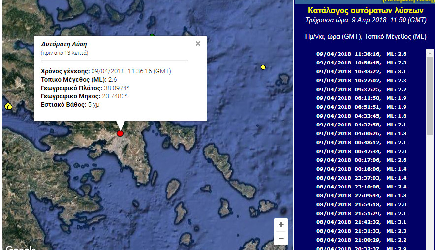 Σεισμός ταρακούνησε την Αθήνα μεσημέρι Δευτέρας του Πάσχα