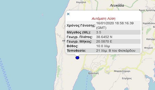 Σεισμός ταρακούνησε πριν από λίγο το Ιόνιο καθώς έγινε αισθητή δόνηση με επίκεντρο νότια της Λευκάδας.