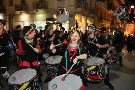 To συγκρότημα κρουστών έκανε πάταγο από νωρίς αφού περιόδευσε στους κεντρικούς δρόμους αναστατώνοντας την πόλη στους πεζόδρομους της Αγίου Νικολάου και της Ρήγα Φεραίου, στην πλατεία Γεωργίου Α΄, στις οδούς Ερμού, Μαιζώνος και Κορίνθου.