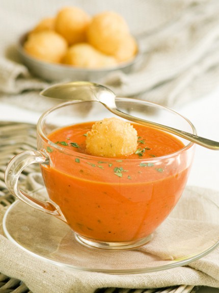 Σούπα ψητής πιπεριάς με τυροκροκέτες