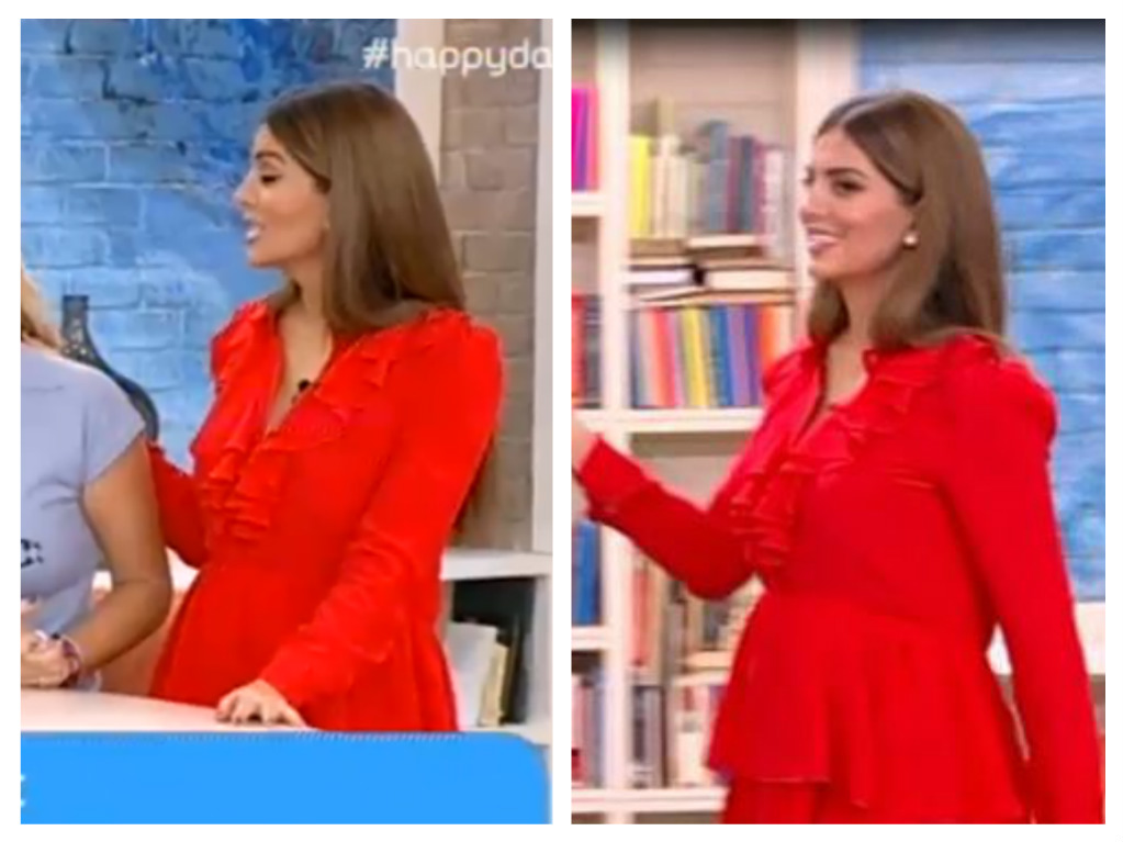Σήμερα, στην εκπομπή της τα πλάνα “πρόδιδαν” την φουσκωμένη της κοιλίτσα, την οποία έκρυβε κάπως το φαρδύ κόκκινο φόρεμα της.