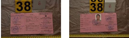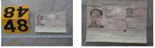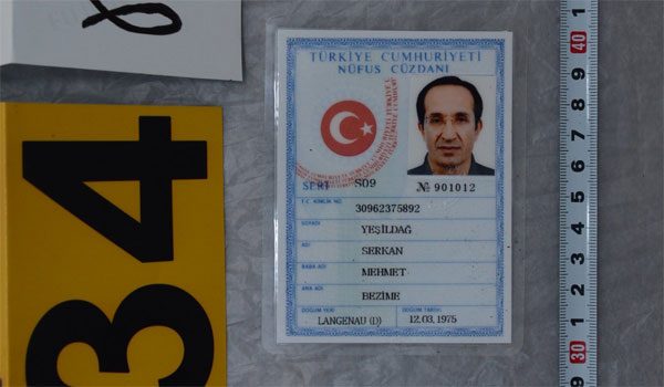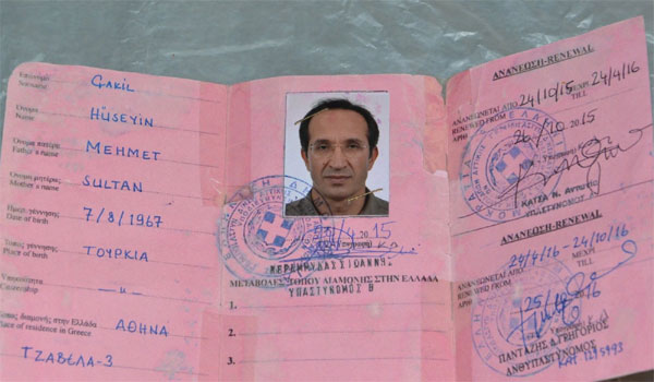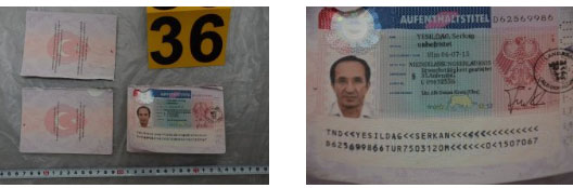 σελίδων διαβατηρίου τουρκικής δημοκρατίας με τη φωτογραφία ενός εκ των συλληφθέντων υπό στοιχεία YESILDAG SERKAN και αριθμό D 62569986. Σε ένα εκ των φύλων αναγράφεται άδεια παραμονής στην γερμανική γλώσσα με αριθμό D 62569986 με ημερομηνία 06-07-2015 υπό στοιχεία YESILDAG SERKAN