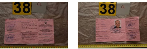 γ) φωτογραφίες και αναγραφόμενα προσωπικά στοιχεία καταφανώς πλαστών εγγράφων, που βρέθηκαν και κατασχέθηκαν κατά τη διάρκεια ερευνών σε οικία στην Καλλιθέα:
