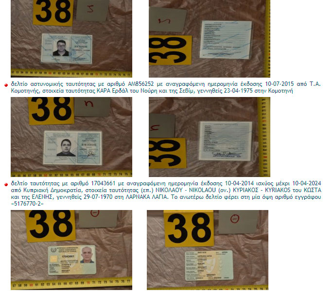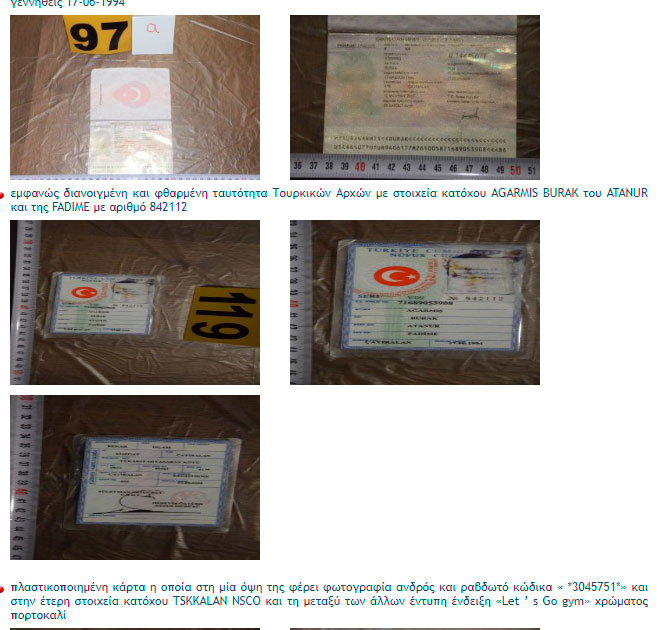 Στη δημοσιότητα ταυτότητες και πλαστά διαβατήρια των 9 Τούρκων συλληφθέντων