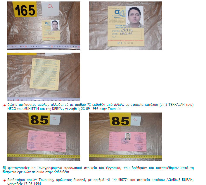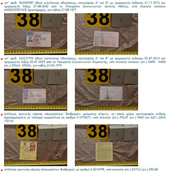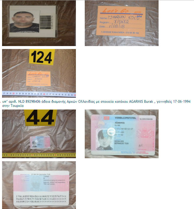 Στη δημοσιότητα φωτογραφίες και προσωπικά στοιχεία πλαστών εγγράφων που είχαν στην κατοχή τους οι εννέα Τούρκοι που συνελήφθησαν από την Αντιτρομοκρατική στο Νέο Κόσμο έδωσε η αστυνομία.