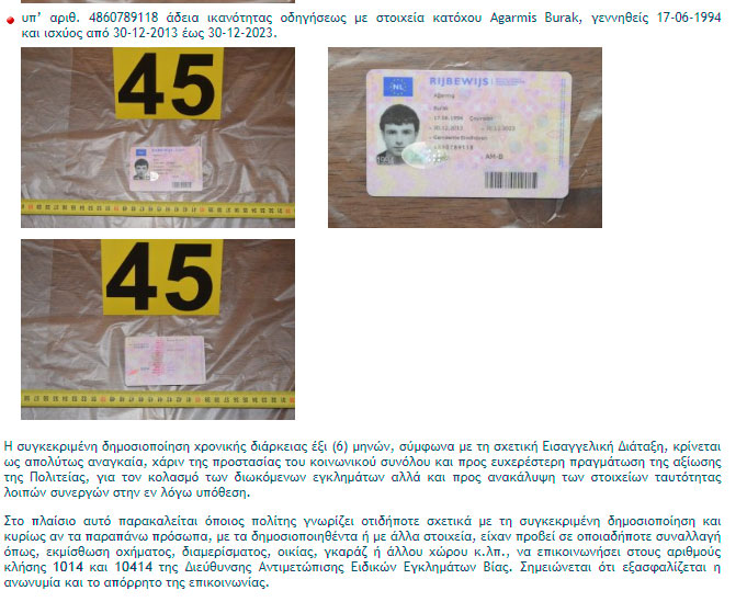 Τα συγκεκριμένα μάλιστα στοιχεία, δίνονται στη δημοσιότητα κατόπιν νέας Διάταξης της Εισαγγελίας Πρωτοδικών Αθηνών: