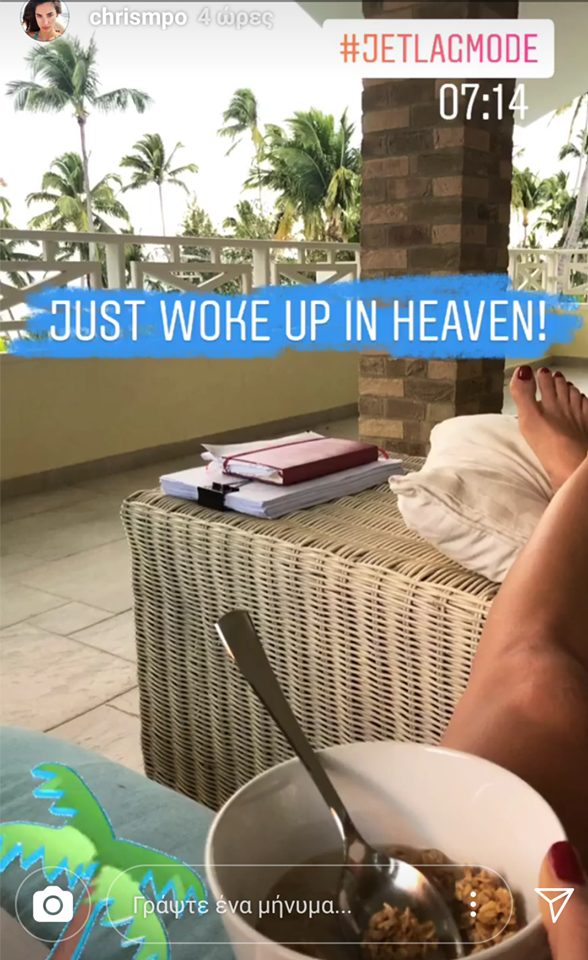 Λίγο πριν, η Χριστίνα ανέβασε story από τη στιγμή που τρώει το πρωινό της, γράφοντας μόλις ξύπνησα στον παράδεισο!