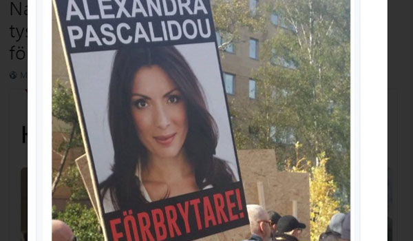 Την απέλαση της Αλεξάνδρας Πασχαλίδου, ζητούν Σουηδοί νεοναζί, οι οποίοι το Σάββατο πραγματοποίησαν πορεία στο Γκέτεμποργκ, ενώ κρατούσαν πλακάτ, στα οποία υπήρχε το πρόσωπο της Ελληνίδας δημοσιογράφου.