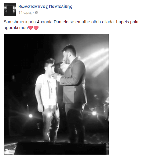 Ο μικρός αδερφός του Παντελή, Νίνο, δημοσίευσε μια φωτογραφία με τον τραγουδιστή on stage και σχολίασε: «Σαν σήμερα πριν από τέσσερα χρόνια σε έμαθε όλη η Ελλάδα. Λείπεις πολύ αγοράκι μου».
