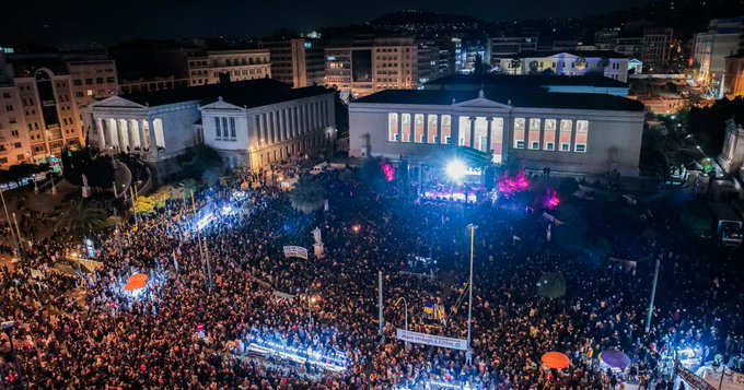 Χιλιάδες πολίτες βρίσκονται στα Προπύλαια, ενώνοντας τις φωνές τους με αυτές των καλλιτεχνών προκειμένου να σταματήσει εδώ και τώρα ο πόλεμος στην Ουκρανία. Σύμφωνα με εκτιμήσεις πάνω από 10.000 άνθρωποι βρίσκονται στη