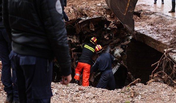 Σε μια αποθήκη κοντά στην Παλαιά Εθνική έχουν επικεντρωθεί οι προσπάθειες των διασωστών προκειμένου να εντοπίσουν τους δύο αγνοούμενους. Τόνοι λάσπης και μπάζα δυσχεραίνουν το έργο τους, αφού κάθε φορά που η δαγκάνα του εκσκαφέα μπαίνει στη γη τραβάει προς τα έξω συντρίμμια και λαμαρίνες αυτοκινήτων.
