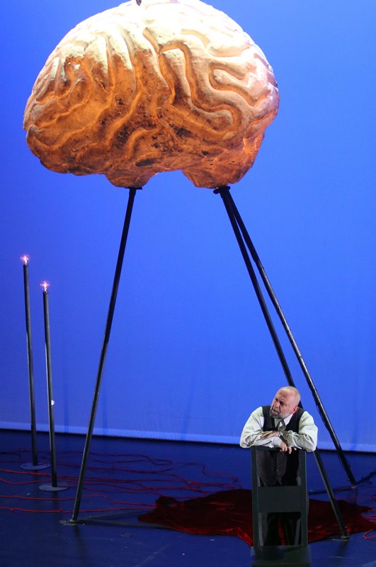 Ο ανθρώπινος εγκέφαλος εκτιθόταν όχι μόνο στο μονόλογο του Γκόγκολ, αλλά υψωνόταν σαν ήλιος στη σκηνή, σε ύψος τριών μέτρων. Η μουσική επιμέλεια, η σκηνοθεσία και το σκηνικό έφεραν επίσης την υπογραφή του Χατζάκη, που έπειτα από αυτή την παράσταση κέρδισε με το σπαθί του μια θέση στη λίστα των «κλασικών», του ελληνικού θεάτρου.