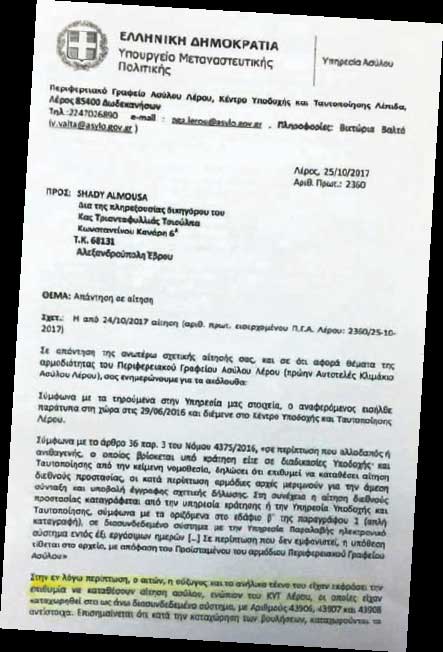 Η απάντηση της υπηρεσίας ασύλου στην οποία δεν αναφέρεται πουθενά πως είχε δηλώσει στις Αρχές ότι είναι τζιχαντιστής.