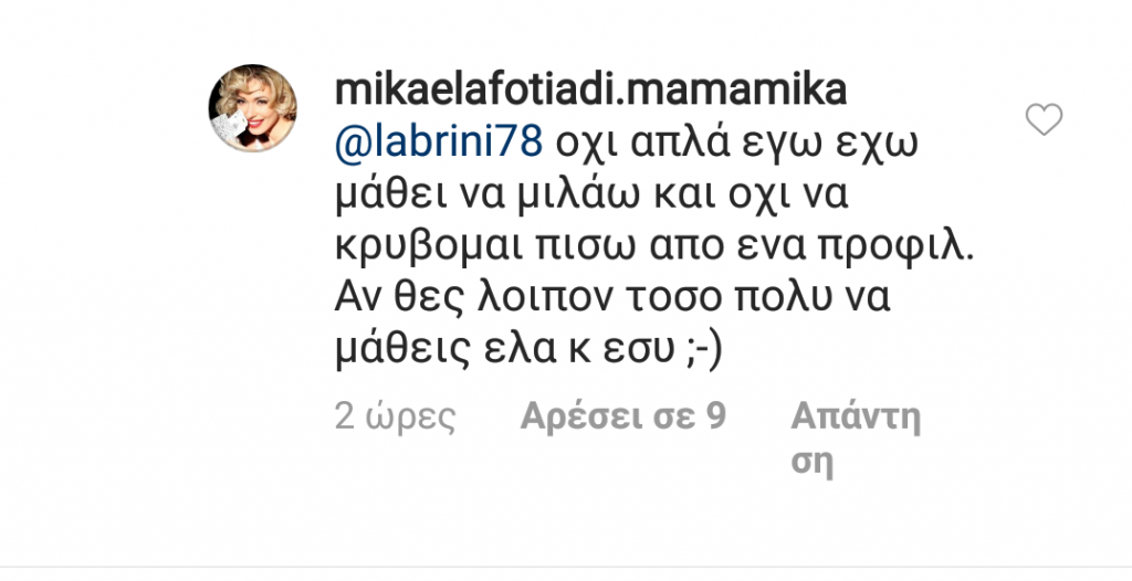 Δείτε τι έγραψε η Μικάελα σε όλα τα αρνητικά σχόλια