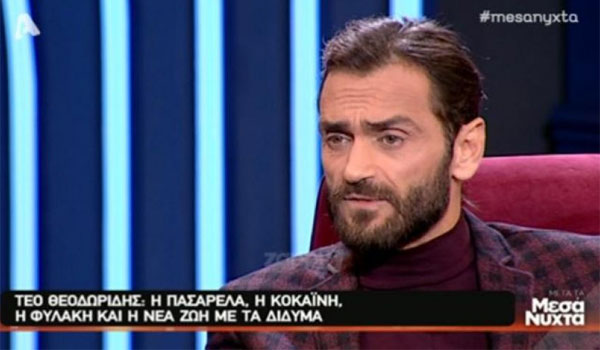 «Στην πορεία της καριέρας μου άρχισα να χάνω τον εαυτό μου. Ξεκίνησα τα ναρκωτικά για ψυχαγωγικούς λόγους. Όταν με συνέλαβαν για την κοκαΐνη, έχασα τη γη κάτω από τα πόδια μου. Επιφανείς άνθρωποι ήρθα στο δικαστήριο να με στηρίξουν. Η οικογένειά μου έπαθε σοκ με τη σύλληψή μου, έχασαν 20 χρόνια από τη ζωή τους. Οι συνθήκες μέσα στη φυλακή ήταν τριτοκοσμικές. Έμεινα στη φυλακή για έξι χρόνια. Μέσα στη φυλακή ένιωθα πραγματικά ελεύθερος», είπε μεταξύ άλλων ο Τεό Θεοδωρίδης.