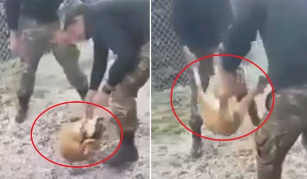 Σοκαριστικό βίντεο: Φαντάροι πετούν σκύλο στο γκρεμό