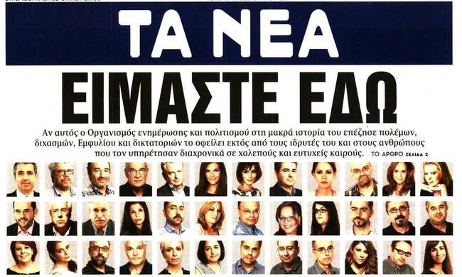 Με τίτλο Είμαστε Εδώ και φωτογραφίες των εργαζομένων κυκλοφορεί σήμερα, Τετάρτη, η εφημερίδα Τα Νέα, ίσως για τελευταία φορά στην ιστορία της, λόγω των καταιγιστικών εξελίξεων στον Δημοσιογραφικό Οργανισμό Λαμπράκη.