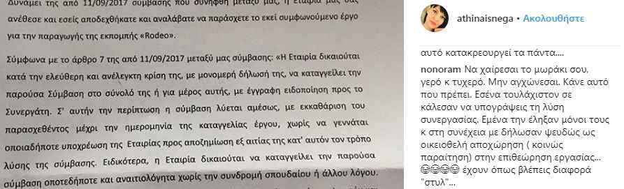 Η διευθύνουσα σύμβουλος του ΣΚΑΪ, Εύη Κουτσαυτάκη, έστειλε εξώδικο στην Αθηναΐδα Νέγκα εκ μέρους του καναλιού του Φαλήρου και η παρουσιάστρια το δημοσίευσε οργισμένη στο Instagram. Κάτω από την ανάρτησή της, λοιπόν, μεταξύ άλλων σχολίασε και η Ελεονώρα Μελέτη.