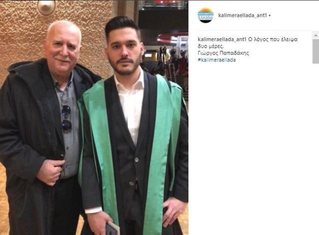 «Ο λόγος που έλειψα δυο μέρες. Γιώργος Παπαδάκης» ήταν το σχόλιο κάτω από τη φωτογραφία του στο Instagram.