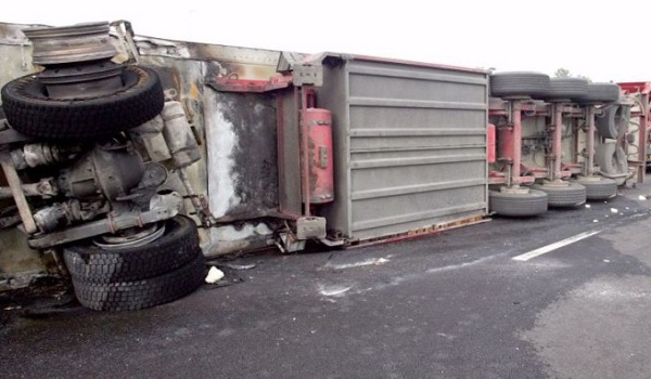 Τρόμος στην Εθνική οδό. Ανατροπή νταλίκας με ασετόν