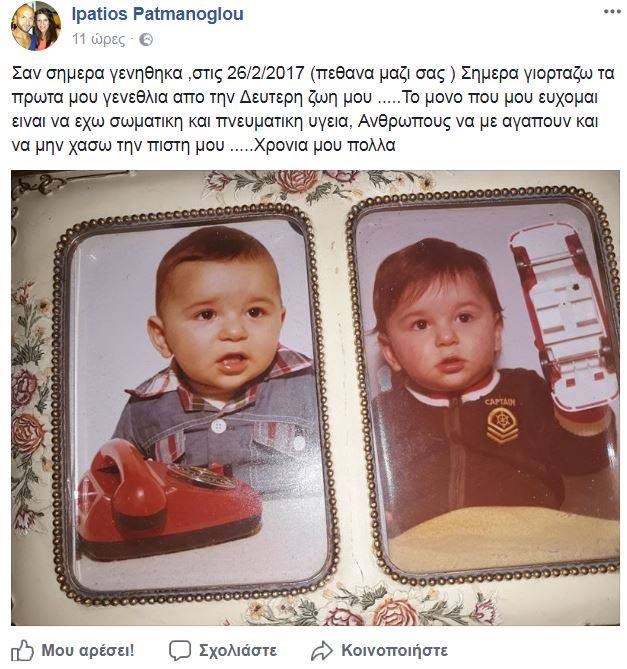 Υπάτιος Πατμάνογλου: Σαν σήμερα γεννήθηκα, στις 26/2/2017 πέθανα μαζί σας