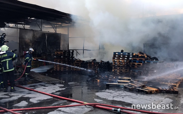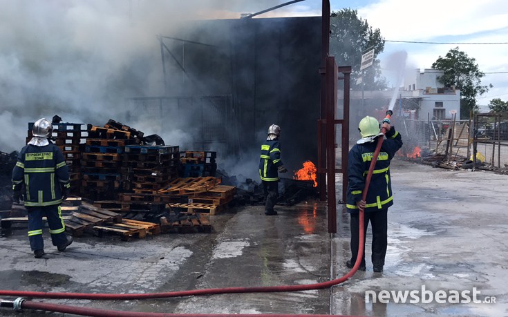 Η φωτιά είναι σε εγκαταστάσεις μεταφορικής εταρείας και καίγονται λάστιχα και παλέτες στην αυλή.