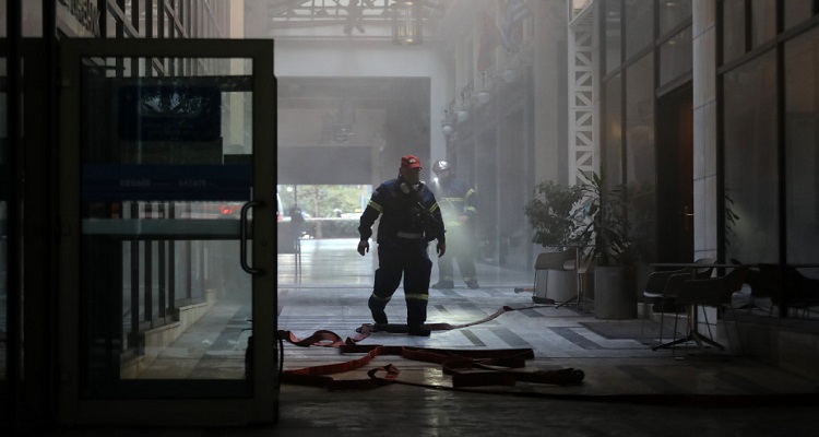 Υπό μερικό έλεγχο η πυρκαγιά σε υπόγειο τράπεζας στην οδό Σταδίου