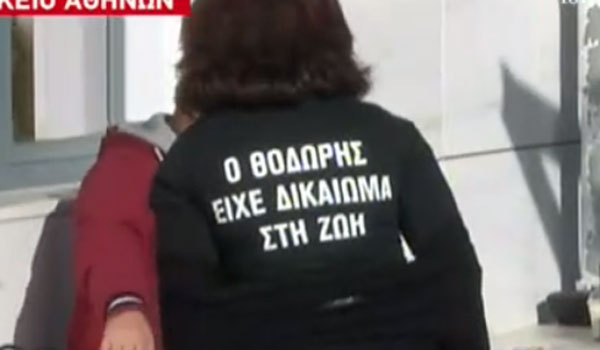 Φορώντας μαύρη μπλούζα με τη φωτογραφία του γιου της στην οποία αναφερόταν ότι ο Θοδωρής είχε δικαίωμα στη ζωή, παρακολούθησε και σήμερα την ακροαματική διαδικασία, ξεσπώντας πολλές φορές σε φωνές και κατάρες.