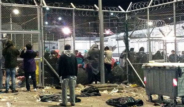 Οι συγκεντρωμένοι πολίτες απαιτούν την άμεση εκκένωση της πλατείας, ενώ οι μετανάστες και οι πρόσφυγες αρνούνται να αποχωρήσουν αν δεν δικαιωθούν τα αιτήματά τους, που έχουν να κάνουν με την εξέταση των αιτημάτων ασύλου που έχουν υποβάλει και τον απεγκλωβισμό τους από το νησί.