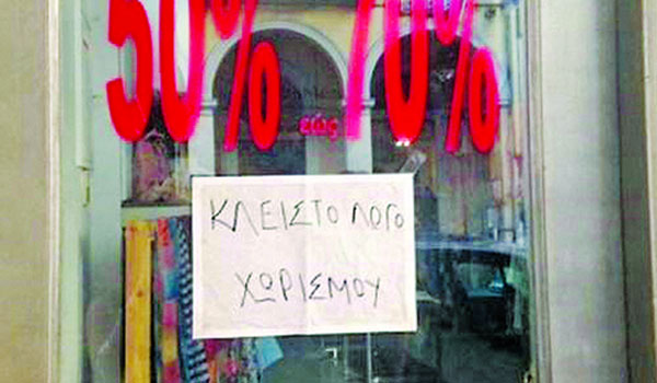 «Χωρίζω και το κλείνω» φέρεται ότι σκέφτηκε ένας καταστηματάρχης από την Πάτρα, ο οποίος μάλιστα φρόντισε να το κάνει γνωστό και στην πελατεία του τοποθετώντας πινακίδα, με τη σχετική φωτογραφία να κάνει τον γύρο του διαδικτύου.