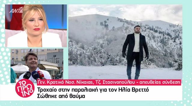 Οι γιατροί που έχουν αναλάβει τον Ηλία Βρεττό μετά το σοβαρό τροχαίο που είχε, δήλωσαν χθες στην εκπομπή Αποκαλυπτικά πως ήταν νωρίς για να δουν πώς θα εξελισσόταν η κατάσταση του. Χαρακτηριστικά, τόνισαν ότι θα έπρεπε να περάσουν κάποιες ώρες για να έχουν μια σωστή εικόνα.
