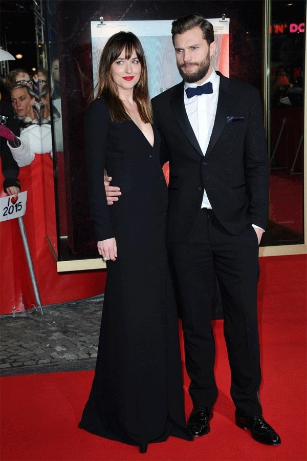 Η Dakota Johnson που υποδύεται στην ταινία την άβγαλτη φοιτήτρια Anastasia Steele έκανε μια σέξι εμφάνιση στο κόκκινο χαλί, φορώντας μια μαύρη Dior τουαλέτα με βαθύ σκίσιμο στο πόδι. Από την άλλη ο Mr Grey (Jamie Dorman) ήταν πολύ κομψός με το μαύρο κοστούμι που επέλεξε να φορέσει, ενώ συνοδευόταν από τη σύζυγό του Amelia Warner.