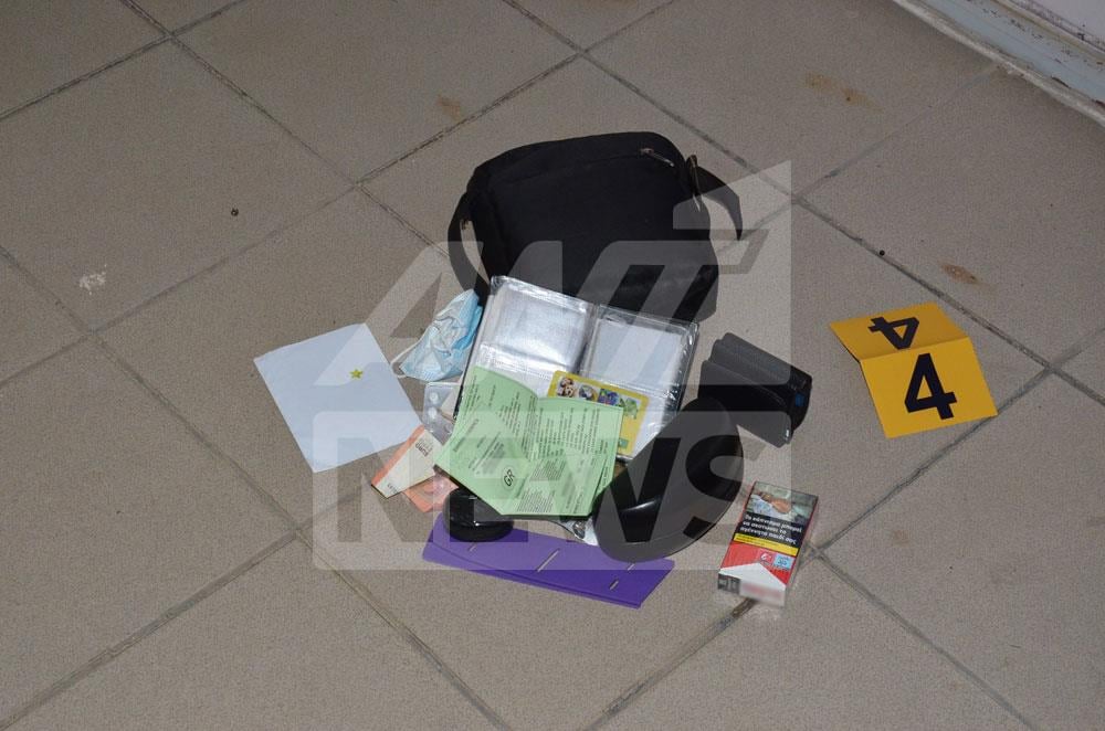 Δίπλα στο σκηνικό της φρίκης, και η τσάντα του δράστη, στην οποία έφερε δισκία με βαριά ηρεμιστικά, το εισιτήριο ταξιδιού από την Άρτα στην Αθήνα και τη μωβ θήκη που έκρυβε το μαχαίρι.