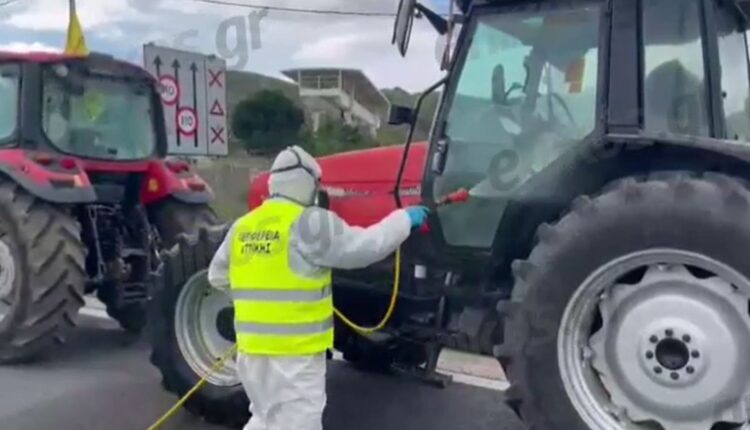 Αγρότες: Βίντεο από την απολύμανση των τρακτέρ πριν μπουν στην Αθήνα