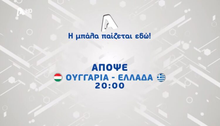 ALPHA -Ουγγαρία_Ελλάδα: Απόψε, Τρίτη 31 Μαρτίου