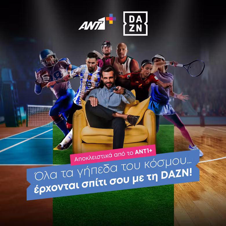 Όλοι οι νέοι και υφιστάμενοι συνδρομητές του ΑΝΤ1+ μπορούν να προσθέσουν τη DAZN στο πακέτο τους και να απολαύσουν δωρεάν πρόσβαση μέχρι τις 20 Φεβρουαρίου 2026!