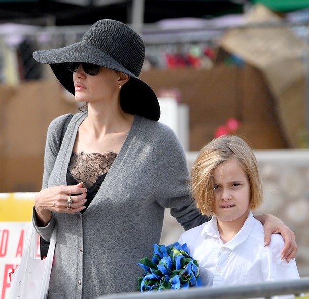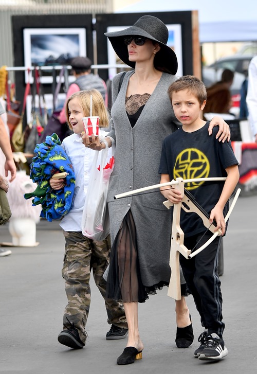 Η 42χρονη ηθοποιός απαθανατίστηκε σε βόλτα με τα τρία από τα παιδιά της, τα Knox, Vivienne και Shiloh, σε υπαίθρια αγορά της Πασαντένα και η ιδιαίτερα αδυνατισμένη σιλουέτα της δεν περνά απαρατήρητη.