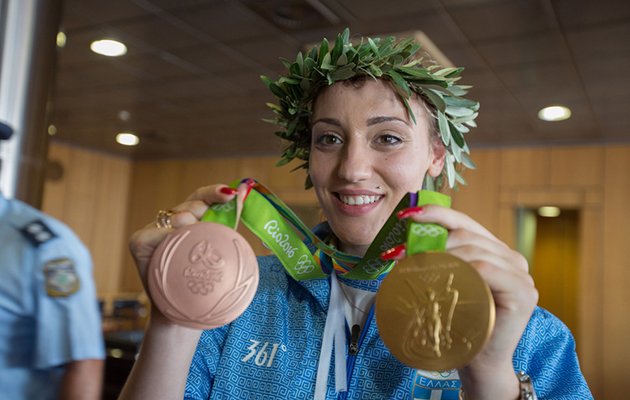 Με πλατύ χαμόγελο διαρκώς η Ελληνίδα χρυσή Ολυμπιονίκης, έχοντας πάντα στο πλευρό της τον πατέρα και προπονητή της, Τάσο, τη μαμά και τον αδερφό της να την περιμένουν καρτερικά σε απόσταση και φορώντας στο κεφάλι στεφάνι ελιάς, δεν αρνήθηκε να αγκαλιάσει, να φωτογραφηθεί και να μιλήσει σε όλους όσοι της το ζήτησαν. «Νιώθω φανταστικά. Δεν έχω συνειδητοποιήσει ακόμη τι έκανα. Η υποδοχή στην Αθήνα, αλλά και εδώ, με βοηθούν να καταλάβω τι έχει γίνει. Το επίτευγμά μου με κάνει αισιόδοξη για περισσότερα μετάλλια στο μέλλον», ανέφερε αρχικά η Κορακάκη.