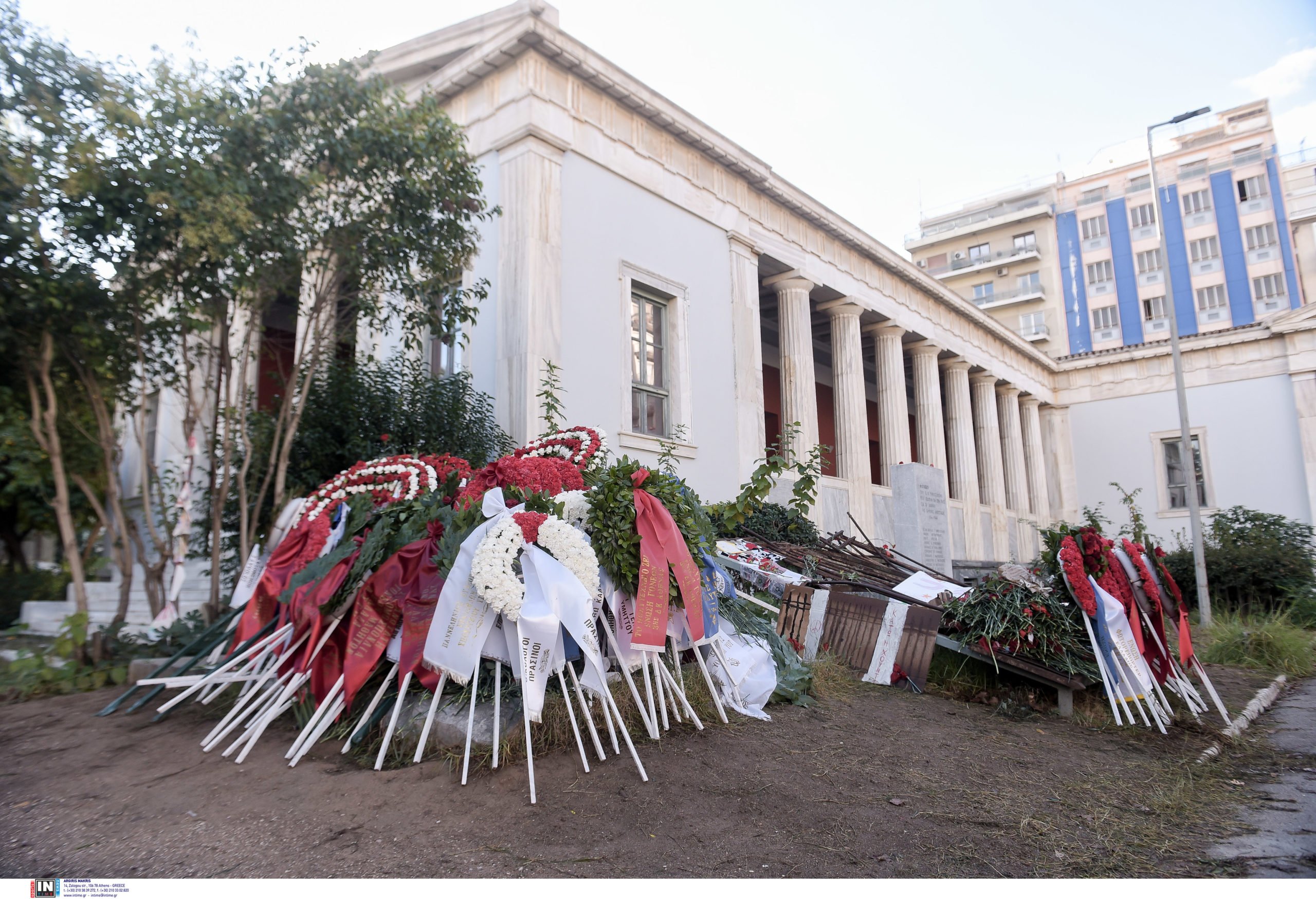 Υπό βροχή άνοιξε τις πύλες του το Πολυτεχνείο σήμερα, Κυριακή (17/11), τελευταία ημέρα εορτασμού της επετείου της 17ης Νοεμβρίου 1973. Από την Παρασκευή, που άρχισαν οι τριήμερες εκδηλώσεις μνήμης και τιμής, πλήθος κόσμου έχει περάσει από το ιστορικό κτιριακό συγκρότημα της Πατησίων, για να αφήσει λουλούδια και στεφάνια, τιμώντας την μνήμη όσων χάθηκαν εκείνο το βράδυ.