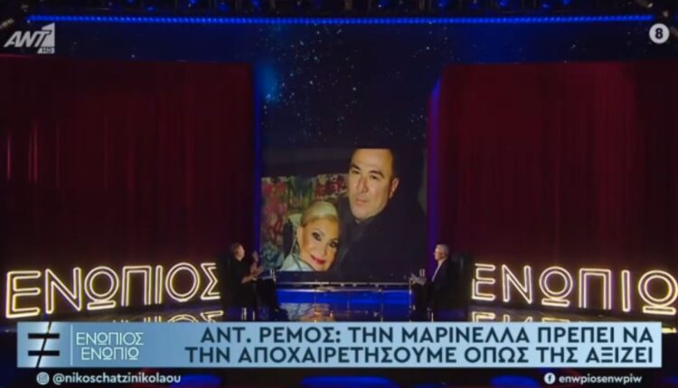 Ο Αντώνης Ρέμος βρέθηκε το βράδυ της Πέμπτης (20/11) καλεσμένος στην εκπομπή του Νίκου Χατζηνικολάου «Ενώπιος Ενωπίω», και αναφέρθηκε στην Μαρινέλλα, η οποία τον Σεπτέμβριο του 2024 υπέστη βαρύ εγκεφαλικό στη σκηνή του Ηρωδείου.