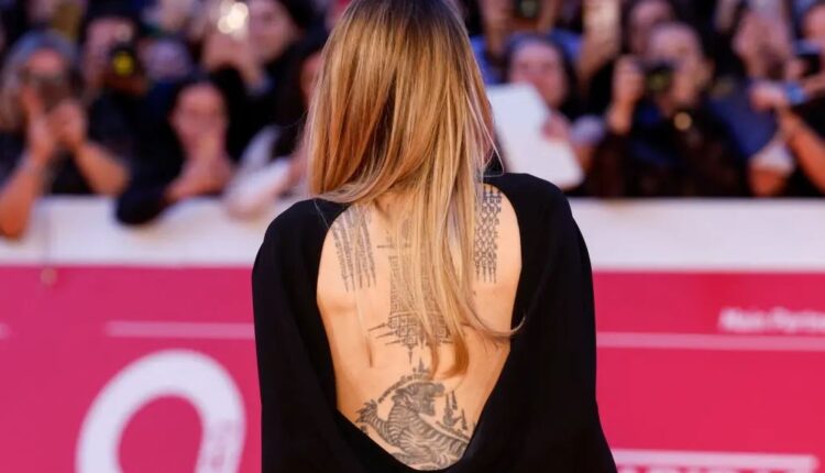 Αντζελίνα Τζολί: Επιδεικνύει τα τεράστια τατουάζ στην πλάτη της στην πρεμιέρα της ταινίας «Couture» στη Ρώμη